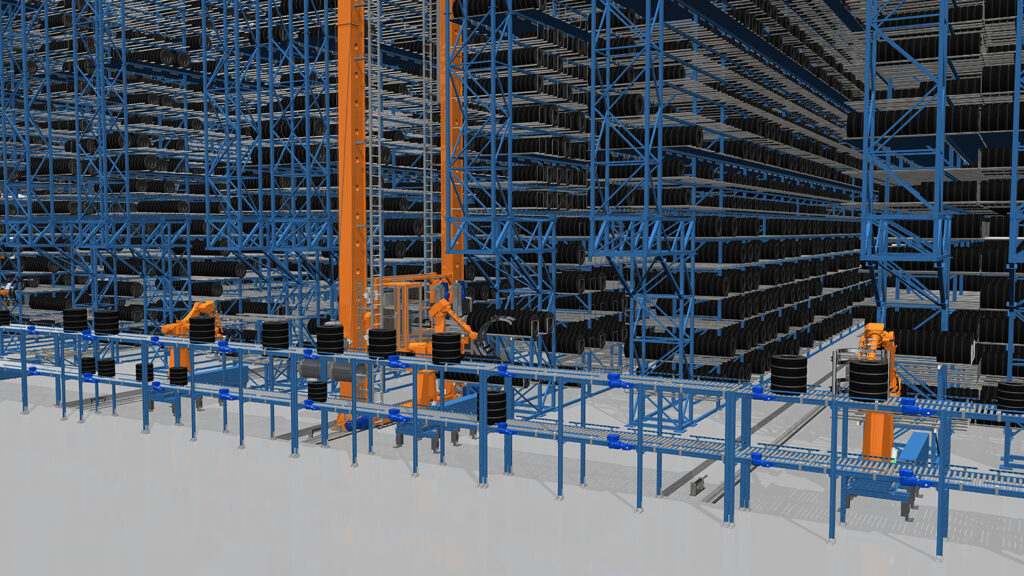 The implementation process begins by building a simulation model of the customer’s warehouse to analyse material flows and identify potential bottlenecks. This provides concept validation with 3D-visualisation and simulations to identify the optimal logistic solution. The concept is modelled in the WMS Digital Twin to ensure 100% accuracy. This systematic approach allows for pre-construction testing and verification of large and complex configurations. The detailed information from the simulation notifies the engineering and design of the logistics concept, including mechanical, electrical, PLC, and ICT components.