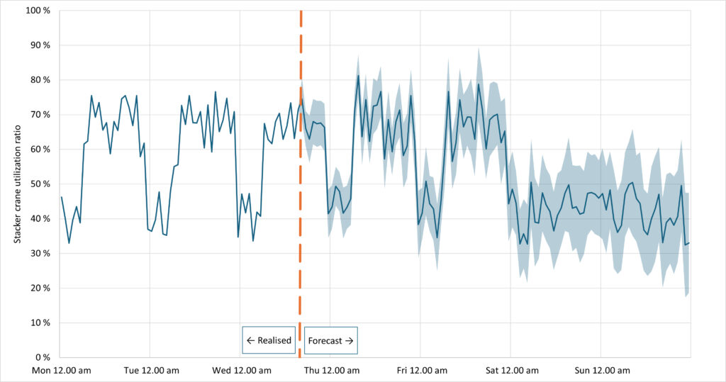 Additionally, it can accurately predict dispatching times. By setting specific limit values, users can receive notifications of needed reactions well in advance. The statistical probability of shipment cancellations or the appearance of unplanned shipments can also be modelled to predict possible material shortages or warehouse capacity issues.